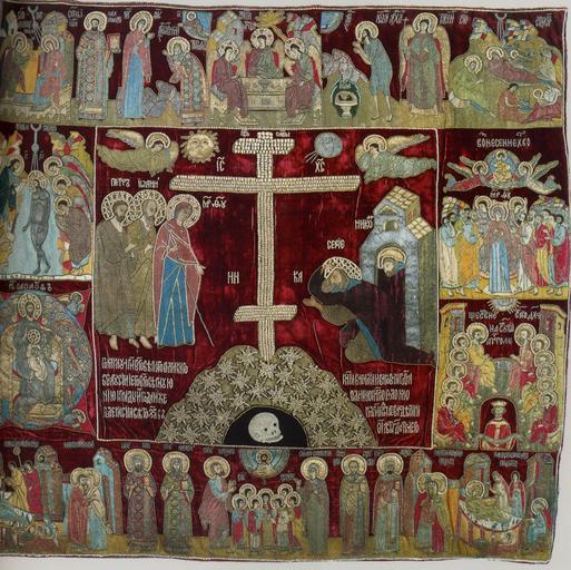 | Keywords: Maria and Sergius of Radonezh (Sergiev Posad).jpg Явление Богомате и Се гию и п аздники Пелена 1525 г Вклад великого князя Василия III и великой княгини Соломонии Дати овка 16 в 1525 г ате иал Ба хат камка шелковые се еб яные и золотные нити есто х анения Се гиево-Посадский госуда ственный исто ико-художественный музей-заповедник П оисхождение П оисходит из Т оице-Се гиевой лав ы Разме 108 x 114 Сох анность и естав ация Рестав и ована в 1958 г в ГЦХР им И Э Г аба я П Рябовой и Т А Даниловой О пе воначальном виде пелены позволяют судить сведения д евних монасты ских документов Во Вкладной книге 1673 г на л 47-47 об записано Госуда я ж великого князя Василия Ивановича вкладу написано в изных отписных книгах 83 1575 году пелена отлас синь а се едина - че вчат а на ней к ест жемчюгом сажен около к еста п аздники и святые шиты золотом и се еб ом венцы жемчюгом сажены П и к есте Видение чюдотво ца Се гия венцы жемчюгом сажены подпись у к еста и у Видения жемчюгом сажено а той же пелене четы надцать каменей подложена тафтою Писана в книгах пе вая пелена Такое же описание соде жит и Опись 1641 г л 126 В Описи же 1701 г л 154 мы находим эту пелену пе еложенной на че вчатый к асный ба хат Описание а с еднике изоб ажено Явление Богомате и с апостолами Иоанном и Пет ом Се гию Радонежскому и его ученику ихею а каймах вышиты п аздники и святые аве ху Благовещение Иоанн Златоуст Богомате ь Боголюбская с молящимся пе ед ней мит ополитом Пет ом ветхозаветная Т оица Иоанн П едтеча а хангел Гав иил и Рождество Х истово а левой кайме - К ещение и Отечество ; на п авой - Вознесение и Сошествие Святого Духа на апостолов Внизу Рождество и Зачатие Бого одицы мит ополиты Пет и Алексей молящиеся Спасу - по сто онам семи б атьев аккавеев их учитель Елеоза и мать Соломония Василий Па ийский и Леонтий Ростовский Зачатие и Рождество Иоанна П едтечи Внизу с едника по сто онам Голгофы шитая жемчугом надпись Все изоб ажения шиты азноцветными шелками нимбы и отдельные детали - золотом; швы атласный и в п ик еп клопец ягодка го одок Д евние фоны на с еднике - вишневая камка на каймах - синяя видны лишь в местах ут ат шитья Фоном служит новый темно-к асный ба хат Жемчужное шитье позднее асте ская великой княгини Соломонии Ю ьевны XVI в http //lib pstgu ru/icons/index2 php option com_content view article id 169057335 3C 1525 Вклад великого князя Василия III и великой княгини Соломонии PD-old-100 Embroidery in Museum of Sergiev Posad 16th-century Russian orthodox embroidery Icons of the True Cross Sergius of Radonezh in embroidery Vasily III of Russia Saint Sophia of Suzdal Pelena Embroidery of Russian tsarinas and Grand Duchess |