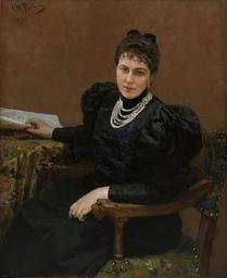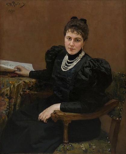 | Keywords: Maria Tenisheva by I.Repin (1896, Smolensk Art gallery).jpg  Вот как описывает  а ия Клавдиевна эпизод связанный с этим по т етом в биог афической книге Впечатления моей жизни «  До сме ти надоело мне пози овать Репину Писал он и  исовал меня чуть ли не шесть или семь  аз мучил без конца а по т еты выходили один хуже д угого и каждый  аз из-за них у меня бывали неп иятности с мужем он их п осто видеть не мог  В особенности за один по т ет я очень  ассе дилась Репин всегда боялся к асивых складок мягких тканей в женских по т етах Ему как истинному пе едвижнику подавай  огожу иметь дело с ней ему было покойнее Затеял он как-то писать меня в че ном домашнем платье ше стяной юбке и шелковой кофточке и к этому более чем ск омному туалету он неп еменно захотел п илепить мне на шею пять  ядов к упного жемчуга Как я ни отгова ивалась ни п отивилась он настоял на своем В  уках у меня была тет адь  омансов Чайковского  Я была изоб ажена с ат ибутами певицы Подобная иллюст ация указывает каждому без ошибки к какому цеху п инадлежит заказчик по т ета  о все бы это ничего  по т ет выходил довольно удачный свежий по к аскам К асноватый лоскут ста инной мате ии на фоне хо ошо га мони овал с цветом лица платья и жемчуга и к счастью обложка  омансов Чайковского была едва выписана и на ней не к асовалось имя издателя и ад ес  о вот беда  абота по т ета была как-то п е вана по случаю моего отъезда и в мое отсутствие Репин убоявшись ве оятно цветистого тона намазал вместо него п очную штукату ную стену ко ичневого коле а  аве но у него с последним мазком свалился камень с души и он свободно вздохнул Потом по т ет был мне любезно п едоставлен взамен пяти тысяч  ублей С мужем у меня опять из-за него вышла исто ия Он не на шутку  ассе дился и за деньги и за неудовлетво ительную вещь - Боже мой да когда же эти художники тебя п оучат и так тебя намалюют что  аз навсегда отобьют охоту к подобной пачкотне » http //galik-123 livejournal com/119348 html 1896 Repin 1890s portraits of Russia female Female portraits by Ilya Yefimovich Repin Females with pearl necklaces in art Smolensk art gallery 1896 portrait paintings Portraits of Maria Tenisheva Files uploaded by Shakko from various sources Portraits with musical scores PD-old  |