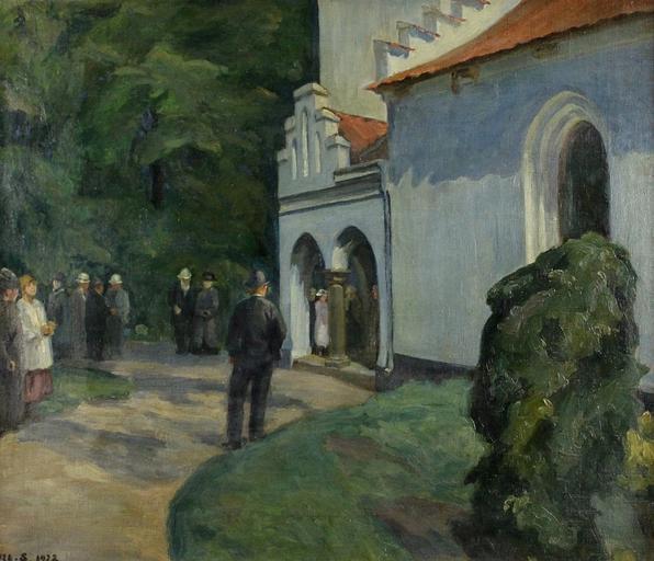 | Keywords: Marie Sandholt Gesellschaft vor Kapelle 1922.jpg Gesellschaft vor Kapelle http //www auktionshaus-aldag de/ 1922 Creator Marie Sandholt oil canvas cm 75 88 object history exhibition history credit line accession number PD-old-auto-1923 1942 Marie Sandholt 1922 paintings Churchgoing in art Images from Auktionshaus Aldag |