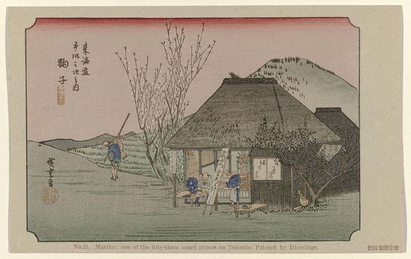 Keywords: Mariko-Rijksmuseum RP-P-2010-310-95-21.jpeg accession number RP-P-2010-310-95-21 Utagawa died 1858; Fujisawa Bunjirô Fujisawa BunjirôHiroshige I credit line nl Twee reizigers drinken thee bij een rustplaats aan de Tôkaidô Label Line mentioned on object Hiroshige I Utagawa 1797 - 1858 1906 kleurenhoutsnede; lijnblok in zwart met kleurblokken Collection prenten; Japan collectie kaart Height mm 90 kaart Width mm 141 exhibition history cardboard object history Acquisition 2009-10-13 object type PD-US PD-old Data and photography rights All data and all images made available through the API are either in the public domain or are subject to a CC0 license https //www rijksmuseum nl/en/api/terms-and-conditions-of-use cc-zero place of creation Japan http //www rijksmuseum nl/collectie/RP-P-2010-310-95-21 http //hdl handle net/10934/RM0001 COLLECT 490384 handle Mariko Uploaded with GWToolset Rijksmuseum RP-P-2010-310-95-21 http //www rijksmuseum nl/media/assets/RP-P-2010-310-95-21 Images uploaded by Fæ Japanese 20th-century prints in the Rijksmuseum Amsterdam Images from the Rijksmuseum |