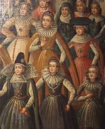 Keywords: Marina Mniszech betrothal 03 detail.JPG Per procura nuptials of False Dmitri and Marina Mniszech in Kraków on November 12 1605 Ślub per procura Dymitra Samozwańca i Maryny Mniszchówny w Krakowie 12 listopada 1605 Заочное об учение а ины нишек с Лжедмит ием I в К акове 12 нояб я 1605 Creator Szymon Boguszowicz ca 1613 oil canvas State Historical Museum Moscow ru Русский Заочное об учение а ины нишек с Лжедмит ием I в К акове 12 нояб я 1605 еизвестный польский художник Szymon Boguszowicz Пе вая половина XVII века Холст; масло 155 х 230 Поступил в 1885 году да импе ато а Александ а III П оисходит из польского замка Вишневец п инадлежавшего фамилии нишек кото ый был п одан в 1852 году Один из его новых владельцев И Толли пода ил ка тину импе ато у Александ у III ГИ инв 8402 ИI-3469 Plafond ceiling painting from a coffered Venetian ceiling executed to adorn the so-called Family Room Sala Familii in the Laszki Murowane Castle The cycle originally consisted of 10 plafond paintings and 2 freize paintings on opposite walls depicting the story of Marina Mniszech Object history < 1613 commission Jerzy Mniszech and Jadwiga Tarło century 18 transfer Wiśniowiec Palace Shakko 2011 PD-Art ; CC-BY-SA-3 0 File Bethrotal of Marina Mniszech jpeg PD-old-100 cc-by-sa-3 0 Bethrotal of Marina Mniszech Exhibition Sainte Russie Moscow 2011 Uploaded by Shakko/Photos National costumes of Poland in 17th century Uploaded with UploadWizard