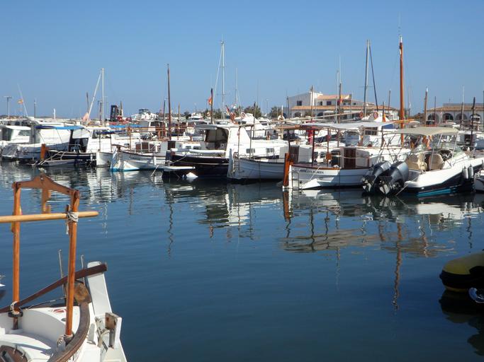 Keywords: marina port sailing boats yachts holiday ships boot shipping water sea blue coast maritime travel water reflection mirroring mallorca mediterranean colonia de sant jordi