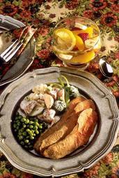 | Keywords: Marinated beef steak with potato vegetable salad.jpg A plate of sliced marinated beef steak with potato vegetable salad and peas There is a small bowl of mixed fruit behind the plate This was a poster in the Healthy Eating Tips series Topics/Categories Food and Drink Type Color Photo Source National Cancer Institute Len Rizzi Photographer 2552 1991-02 Reuse Restrictions None - This image is in the public domain and can be freely reused Please credit the source and/or author listed above Len Rizzi Photographer PD-USGov-HHS-NIH Media from National Cancer Institute Visuals Online Images uploaded by Fæ Beef steaks |