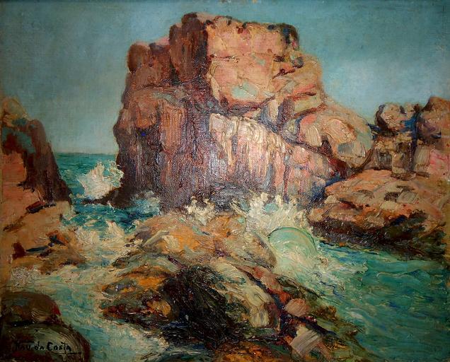 | Keywords: Mário Navarro da Costa (1883-1931) Seascape with rocks and waves, 33 x 41 cm, oil on canvas on cardboard, Photo Gedley Belchior Braga.jpg en Mário Navarro da Costa 1883-1931 Seascape with rocks and waves 33 x 41 cm oil on canvas on cardboard Not dated Probably c 1911-1915 or early XX century Signed on the lower left side and on the back of the cardboard Provenance Private collection of the filmmaker David Neves 1939-1994 Rio de Janeiro Private collection of distinguished family Niteroi RJ until 2011 Current Private Collection Photo Gedley Belchior Braga between 1911 1915 uploaded 2013-07-03 own / private Collection Creator Mário Navarro da Costa reproduced by Gedley Belchior Braga Projeto del Rei Licensed-PD-Art-two PD-old-70-1923 cc-by-sa-3 0 Gedley Belchior Braga Projeto del Rei Uploaded with UploadWizard Projeto del Rei Mário Navarro da Costa Oil paintings of seascapes 1910s paintings from Brazil Water reflections in art 1900s paintings from Brazil 20th-century paintings from Brazil Impressionist paintings in Brazil |