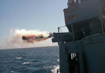 Keywords: Mark 46 torpedo.jpg http //www dodmedia osd mil/Assets/1992/Navy/DN-SC-92-05752 JPEG Released to Public ID DNSC9205752 Service Depicted Navy Command Shown N1601 A Mark 46 torpedo is fired from a Mark 32 torpedo tube aboard the guided missile destroyer USS GOLDSBOROUGH DDG-20 Camera Operator OS2 BOUVIA Date Shot 1 Jan 1990 PD-USGov Mark 46 torpedo Mark 32 Surface Vessel Torpedo Tubes USS Goldsborough DDG-20 |