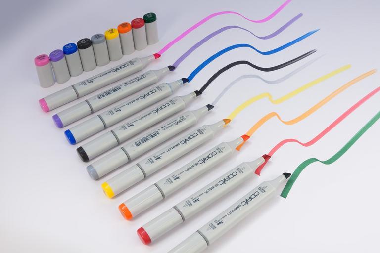 Keywords: marker felt tip pens writing implement character device colorful color leave draw sketch graphic design tool open try out colour sample copic