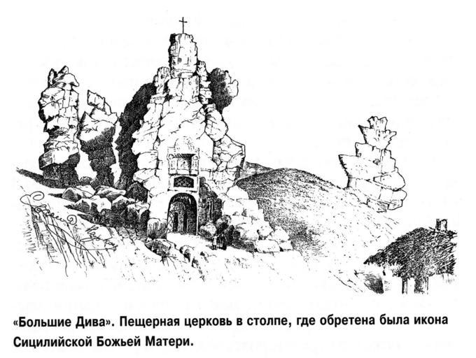| Keywords: Markov EL Bol'shie Diva-4 1890.jpg en Bol'shie Diva ru Большие Дива Пеще ная це ковь в столпе где об етена была икона Сицилийской Божьей ате и а ков Е Л В ст ане белых го Поездка в Дивного ье Во онеж Тво ческое объединение «Альбом» 2007; Ст 44 - скани ованное изоб ажение Евгений Львович а ков 1890 год PD-old Chalk Trip to Divnogorie Eugeny Markov Church of the Theotokos of Sicily | ||||