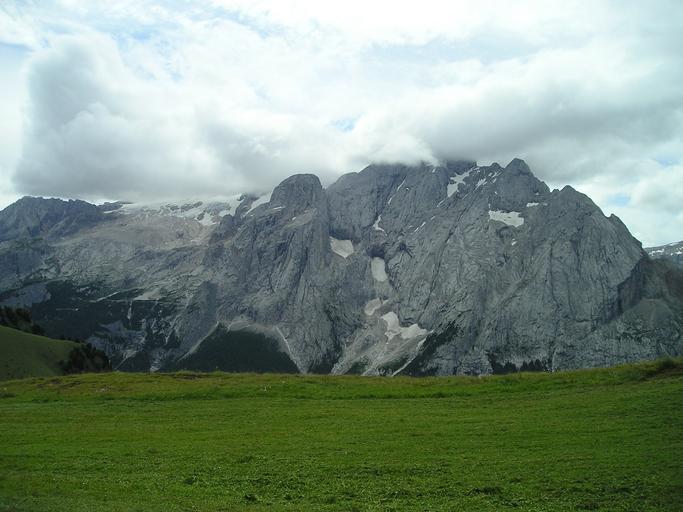 Keywords: marmolada north wall rock wall clouds cloudiness dolomites mountains alpine south tyrol italy