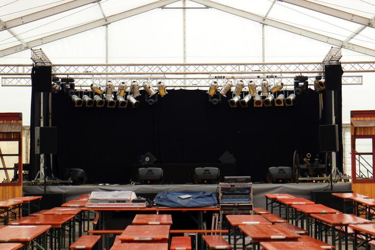 Keywords: marquee tent bierbaenke stage spotlight podium music stage scene