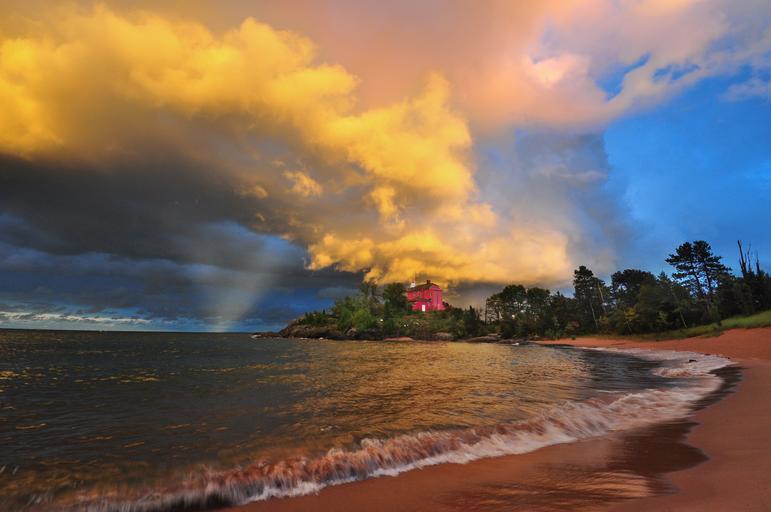 Keywords: Marquette Lighthouse sunset thunderstorm clouds Michigan Harbor