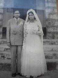 | Keywords: Marriage of Louis .Furtado & Greta.Gonsalves..JPG en A typical Vintage ANGLICIZED MANGALOREAN CATHOLIC WEDDING photo taken after the wedding mass nuptials outside the Sastaan Church premises The newly married Bridegroom Mr Louis John Furtado and Bride Mrs Greta Nathalia Furtado pose for the WEDDING PHOTO Bride Greta N Furtado is the daughter of Late David C Gonsalves and Mary Gonsalves of Mabukala village in South Kanara Bridegroom Mr Louis J Furtado is the son of Late Eusebius Furtado and Brigette Furtado of Barkur in South Kanara district Mr Louis J Furtado was one of the few pioneer village Mangaloreans to migrate to Kenya for employment in 1949 He served as a Cargo Supervisor for British India Steam Navigation B I S N the largest shipping company in the World during that era Rudolph A Furtado son of Louis Greta Furtado Rudolph A furtado 1957-01 Mangalorean Catholics Cc-zero |