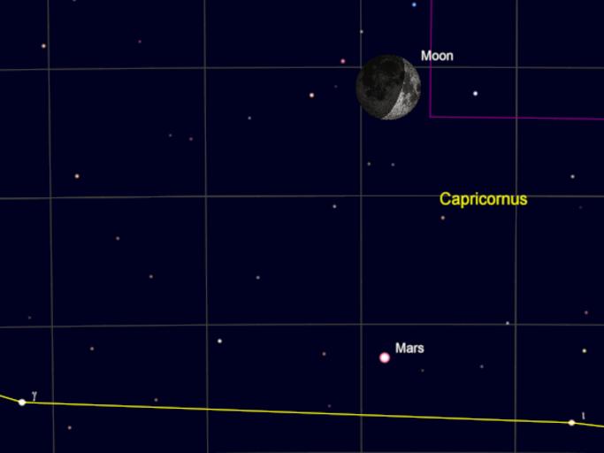 Keywords: The waxing crescent Moon passes north of Mars at 09:56 UT, 5th December 2016. news