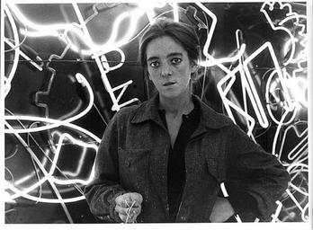 Keywords: Marta Minujín en La Menesunda.jpg en Marta Minujín inside La Menesunda where participants were asked to go through sixteen chambers each separated by a human-shaped entry Led by neon lights groups of eight visitors would encounter rooms with television sets at full blast couples making love in bed a cosmetics counter complete with an attendant a dental office from which dialing an oversized rotary phone was required to leave a walk-in freezer with dangling fabrics suggesting sides of beef and a mirrored room with black lighting falling confetti and the scent of frying food http //edant revistaenie clarin com/notas/2008/05/03/01663279 html Revista Ñ 1965 Author PD-AR-Photo PD-1996 La Menesunda by Marta Minujín Marta Minujín People of Argentina in 1965