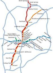 | Keywords: MARTA Rail Map.svg Map of the Metropolitan Atlanta Rapid Transit Authority's rail system Light blue lines represent major interstate and state highways Rail lines are orange North/South and dark blue East/West White circles represent the locations of train stations own Pedriana SVG maps of the United States Metropolitan Atlanta Rapid Transit Authority Rail transport in Atlanta Georgia Public transport maps of Atlanta | ||||