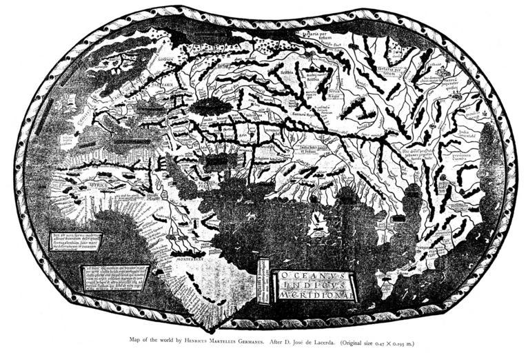 Keywords: Martellus-Lacerda.jpg en The world map of Henricus Martellus Germanus Heinrich Hammer Florence 1490-92 A carefully prepared reproduction by Jose de Lacerda Unlike the photography here the date 1489 at South Africa is visible PD-old-100 Heinrich Hammer and Jose de Lacerda 1490 and 18 Credit line http //en wikipedia org/wiki/User 3APortolanero Wikimedia Commons CC-BY-3 0 1480s maps of the world Cosmographia of the Ptolemaic world Cosmographia Henrici Martelli Germani Maps in Latin Henricus Martellus Germanus |