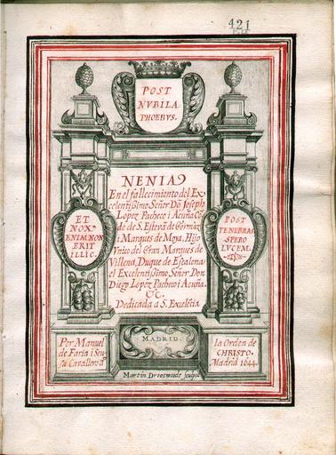 Keywords: Martin droeswoode-faria i sousa.jpg es Portada calcográfica de Nenia en el fallecimiento del excelentísimo señor don José López Pacheco de Manuel de Faria y Sousa Madrid 1644 1644 http //www lllf uam es/~fmarcos/informes/BNArgentina/catalogo/421 jpg Martin Droeswoode other versions PD-old-70-1923 Martin Droeshout |