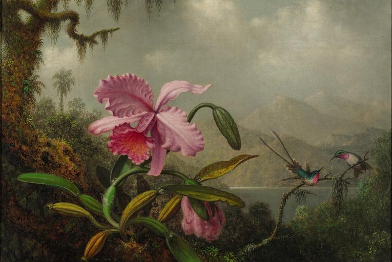 View Original:Martin_Johnson_Heade,_Orchids_and_Hummingbirds,_signed_M.J._Heade,_l.l._Oil_on_canvas,_1875-90.jpg (956x640)