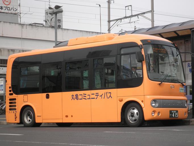 Keywords: Marugame City Community Bus2.JPG ja 丸 駅 留 に 車中の丸 市コミュニティバス 飯野中津線 own At by At 2011-02-20 Cc-zero Marugame City Community Bus HINO Poncho 2nd generation Buses in Japan photographed in 2011 Orange buses Number 415 on buses