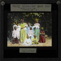 Keywords: "Mary Slessor and her family", Calabar, late 19th century (imp-cswc-GB-237-CSWC47-LS2-019).jpg en <br> Mary Slessor and her family Calabar late 19th century Mary Slessor pictured with a group mainly of children of varying age One small child sits on Mary Slessor's knee in the centre of the picture Some of the children are dressed in brightly coloured clothes ; Mary Slessor was a Scottish missionary known for her work in Africa where she successfully fought against a number of issues including the killing of twins at infancy Mary adopted many abandoned children most notably twin babies and the children of slaves Photographer Unknown Subject personal name Slessor Mary Mitchell 1848-1915 Filename imp-cswc-GB-237-CSWC47-LS2-019 tif Coverage date before 1915 Part of collection International Mission Photography Archive ca 1860-ca 1960 Type images Part of subcollection Photographs from the Centre for the Study of World Christianity University of Edinburgh U K ca 1900-ca 1940s Repository name Centre for the Study of World Christianity Archival file impaunpub_Volume7/1292 url Repository address The University of Edinburgh School of Divinity New College Mound Place Edinburgh EH1 2LX United Kingdom Geographic subject country Nigeria Format aacr2 1 lantern slide 8 x 8 cm Geographic subject continent Africa Rights Contact the repository for details Part of series Mary Slessor LS2 Repository email divinity-CSWC ed ac uk Subject lcsh Keyword Adopted children; Religion Date created circa 1880 Publisher of the digital version University of Southern California Libraries Subject aat genre group portraits Format aat lantern slides Legacy record ID impa-m68162 Access conditions http //www ed ac uk/schools-departments/divinity/research/centres/world-christianity/collections-resources File GB 237 CSWC47/LS2/19 1880 author http //digitallibrary usc edu/cdm/ref/collection/p15799coll123/id/64415 PD-old-70-1923 Magic lantern images Images from USC Digital Library uploaded by Fæ International Mission Photography Archive ca 1860-ca 1960 Calabar |