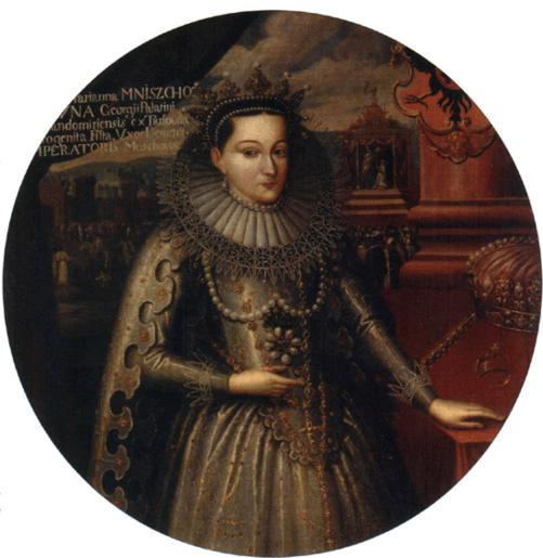 | Keywords: Maryna Mniszchówna of Poland.gif Tsarina Marina Mniszech in coronation robes Caryca Maryna Mniszchówna w stroju koronacyjnym Creator Szymon Boguszowicz ca 1606 oil canvas State Historical Museum Moscow Object history < 1613 commission Jerzy Mniszech and Jadwiga Tarło Laszki Murowane century 18 transfer Wiśniowiec Palace http //swiadectwo1 republika pl/home html swiadectwo1 republika pl PD-Art PD-old-100 Paintings from Laszki Murowane Castle Marina Mniszech in portraits Baroque paintings of women 1606 paintings from Russia Round paintings 1600s paintings in Russia 17th-century oil on canvas paintings in Russia 17th-century portrait paintings in the Hermitage opaque |