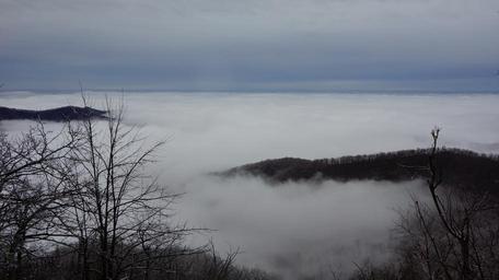 Keywords: Nature Mountain Trail National Park Trekking Hiking Skyline USA Hike Camping Campground Shenandoah Valley Sky Hawk hoarfrost Marys Rock Winter Fog