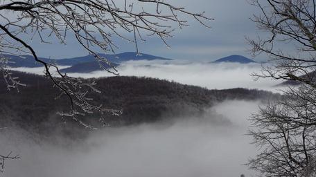 Keywords: Nature Mountain Trail National Park Trekking Hiking Skyline USA Hike Camping Campground Shenandoah Valley Sky Hawk hoarfrost Marys Rock Winter Fog