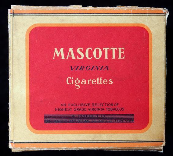 Keywords: Mascotte cigarettes box, back.JPG Very old packaging of a product that is not produced and not sold any more own 2014-04-13 10 33 40 Alf van Beem CC-Zero Trademarked Mascotte cigarettes