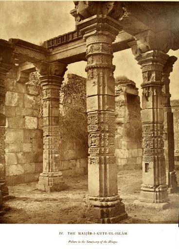 | Keywords: MasjidPillars.jpg Masjid-i-Kutb-il-Islam - Pillars http //archive org/stream/architectureofan00cole page/n84/mode/1up Hardy Henry Col 1872 The architecture of ancient Delhi Arundel Society London 1872 Text Col Henry Hardy Photography Mr Charles Shepherd of Bourne Shepherd pd-old Historical images of the Qutb Minar and its monuments 1872 in Delhi |