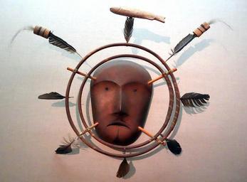 Keywords: Mask, Alaska, Nunivak Island, Eskimo, Cup'ik, c. 1880, wood, cormorant feathers, sinew, pigment, fur, linseed oil, with later addition of shellac - De Young Museum - DSC00294.JPG en Exhibit in the De Young Museum San Francisco California USA This artwork is in the public domain because the artist died more than 70 years ago Photography was permitted in the museum without restriction 2013-11-05 14 48 51 own Daderot other versions cc-zero Eskimo and Inuit Art in the De Young Museum Uploaded with UploadWizard Yupik masks |