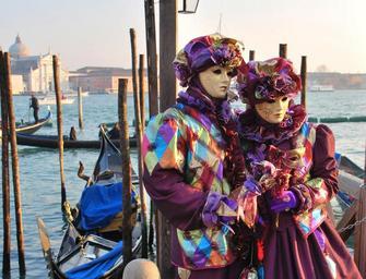 Keywords: mask woman man couple italy venice boat gondola sea people young male adult female