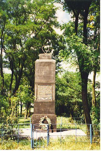 | Keywords: Mass killing site Medzhibozh 1995.jpg Key words Nazi World War II Holocaust Medzhybizh This monument erected in 1967 marks the location of three ravines where approximately 3 000 Jews of the Medzhibozh ghetto were exterminated by the Nazis in 1942 2006-12-29 own assumed Klezmer~commonswiki Medzhybizh |