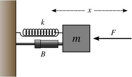 Keywords: Mass-Spring-Damper.png A mass/spring/damper system drawn in Inkscape by Ilmari Karonen SVG original available at Image Mass-Spring-Damper svg or at http //vyznev net/misc/Mass-Spring-Damper svg 2005-11-01 own assumed Ilmari Karonen Legend x displacement from equilibrium m f external force or disturbance applied to system kg m s<sup>-2</sup> m mass of the block kg B damping constant of dashpot kg s<sup>-1</sup> k force constant of spring kg s<sup>-2</sup> Mass-Spring-Damper svg Mass-spring-dampers |