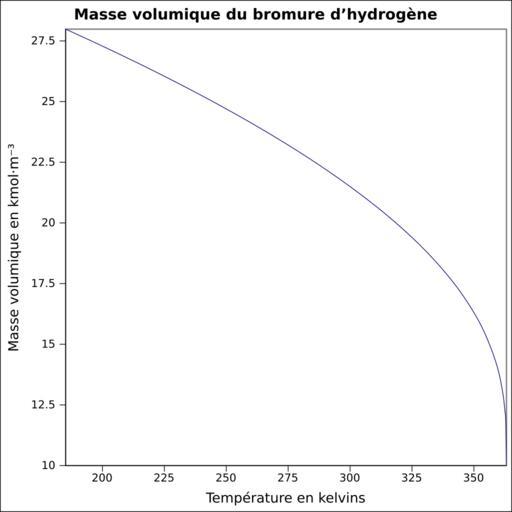 | Keywords: Masse volumique bromure d’hydrogène.svg fr Masse volumique calculée d'après <br/> Robert H Perry et Donald W Green Perry's Chemical Engineers' Handbook McGraw-Hill USA 1997 7e éd 2400 p ISBN 0-07-049841-5 p 2-94 own Epop 2010-06-27 Created with Gnumeric Density curves |