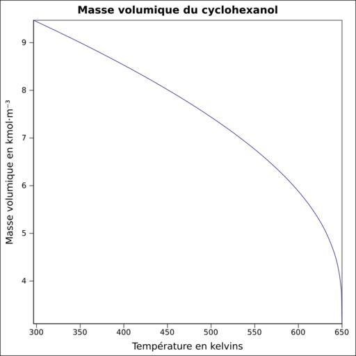 | Keywords: Masse volumique cyclohexanol.svg fr Masse volumique calculée d'après <br/> Robert H Perry et Donald W Green Perry's Chemical Engineers' Handbook McGraw-Hill USA 1997 7e éd 2400 p ISBN 0-07-049841-5 p 2-94 own Epop 2010-06-27 Created with Gnumeric Density curves |