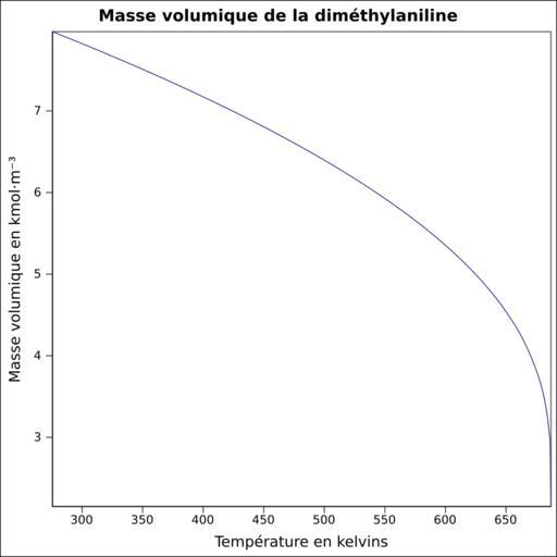 | Keywords: Masse volumique diméthylaniline.svg fr Masse volumique calculée d'après <br/> Robert H Perry et Donald W Green Perry's Chemical Engineers' Handbook McGraw-Hill USA 1997 7e éd 2400 p ISBN 0-07-049841-5 p 2-94 own Epop 2010-06-27 Created with Gnumeric Density curves N N-Dimethylaniline |