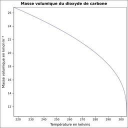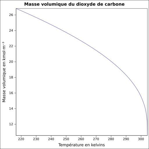 | Keywords: Masse volumique dioxyde de carbone.svg fr Masse volumique calculée d'après <br/> Robert H Perry et Donald W Green Perry's Chemical Engineers' Handbook McGraw-Hill USA 1997 7e éd 2400 p ISBN 0-07-049841-5 p 2-94 own Epop 2010-06-27 Created with Gnumeric Density curves |