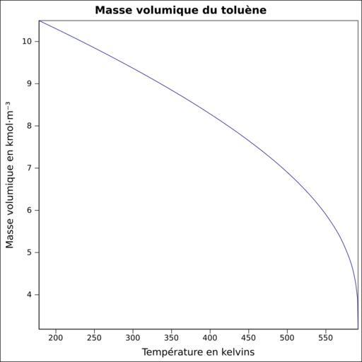 | Keywords: Masse volumique toluène.svg fr Masse volumique calculée d'après <br/> Robert H Perry et Donald W Green Perry's Chemical Engineers' Handbook McGraw-Hill USA 1997 7e éd 2400 p ISBN 0-07-049841-5 p 2-94 own Epop 2010-06-27 Created with Gnumeric Density curves |
