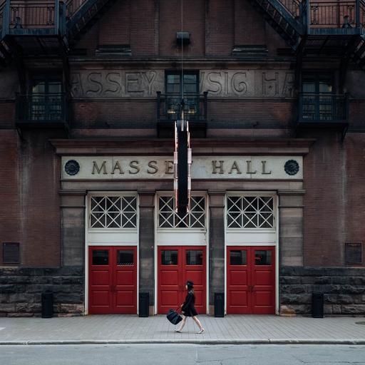 Keywords: massey hall concert hall toronto canada entrance doors house building front architecture exterior estate doorway enter entry construction structure old facade person pedestrian walking woman female