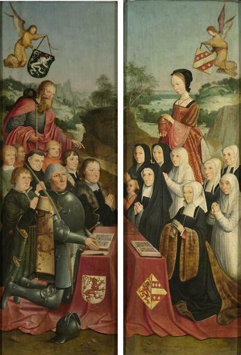 | Keywords: Master of Alkmaar two panels Rijksmuseum.jpg   Artwork LangSwitch Two wings of a memorial tablet with eight male portraits and nine female portraits respectively accompanied by Saints James the Greater and Mary Magdalen <ref>http //www rkd nl/rkddb/dispatcher aspx action search database ChoiceImages search priref 29161 RKDimages Art-work number 29161 title translated by Wikimedia Commons </ref> Twee zijluiken van een memoriestuk met acht portretten van mannen en negen portretten van vrouwen respectievelijk vergezeld van de heiligen Jacobus Major en Maria Magdalena <ref>http //www rkd nl/rkddb/dispatcher aspx action search database ChoiceImages search priref 29161 RKDimages Kunstwerknummer 29161 </ref> Oil on panel cm 101 35 5 left wing cm 102 36 right wing Alkmaar Stedelijk Museum LangSwitch Two side wings of a triptych of which the central panel is now lost Zijluiken van een drieluik waarvan het middenpaneel verloren is gegaan LangSwitch Coat of arms inner left wing bottom right Heraldisch wapen linkervleugel rechtsonder Willem Jelysz van Soutelande  1515/1516 LangSwitch Coat of arms inner right wing bottom left Heraldisch wapen rechtervleugel linksonder Kathrijn Willemsdr van der Graft  1490/1491 LangSwitch Coat of arms inner left wing top left Heraldisch wapen linkervleugel linksboven Jacob de Wael van Rozenburg  1524 LangSwitch Coat of arms inner right wing top right Heraldisch wapen rechtervleugel rechtsboven Margriet van Waveren Provenance c 1515 commissioned by a member of the Van Soutelande family c 1515 trasferred to the St Bavokerk Haarlem date unknown acquired by the Van Leyden Gael family Leiden date unknown acquired by Van Rossum du Chattel Leiden June 1885 bought by the Rijksmuseum Amsterdam inv no SK-A-1188-A and SK-A-1188-B Amsterdam at the sale of the collection of Louis Henry van der Hoop Tilanus  1900 The Hague December 2001 lent to the Stedelijk Museum Alkmaar https //www rijksmuseum nl/collectie/SK-A-1188-A www rijksmuseum nl and https //www rijksmuseum nl/collectie/SK-A-1188-B www rijksmuseum nl ~ 1490-1510 Creator Master of Alkmaar Other versions PD-old-100 LangSwitch Notes Noten <references /> Master of Alkmaar 16th-century portraits Paintings in the Stedelijk Museum Alkmaar Paintings of the Master of Alkmaar with fur Squirrel clothing in art Fur fashion in 1500 |