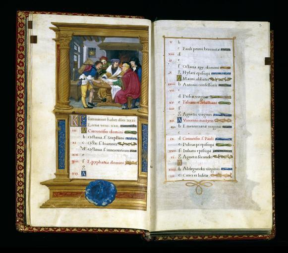 Keywords: Master Jean de Mauléon - Playing Dice - Walters W4492V - Full Page.jpg Dice players make an unexpected appearance in this calendar for gambling is a rare theme for January They are playing raffle a game won by rolling three matching numbers at once similar to modern slot machines There seems to be some debate over the winning throw of three 3s for both players point at the dice but the peddler's smile suggests he has the upper hand over his disgruntled wealthy opponent Perhaps he is using weighted dice a common trick still used today ca 1524 Renaissance ink paint and gold on parchment cm 17 10 accession number W 449 2V 78205 Bishop Jean II de Mauléon ca 1523 by commission Gruel and Engelmann no 140 date and mode of acquisition unknown Henry Walters Baltimore date and mode of acquisition unknown Walters Art Museum Henry Walters Acquired by Henry Walters Checkmate Medieval People at Play The Walters Art Museum Baltimore 2010 place of origin Tours France Walters Art Museum license 3D Walters MS W449 - Book of hours by Jean de Mauleon Dice in art Games in medieval miniatures |