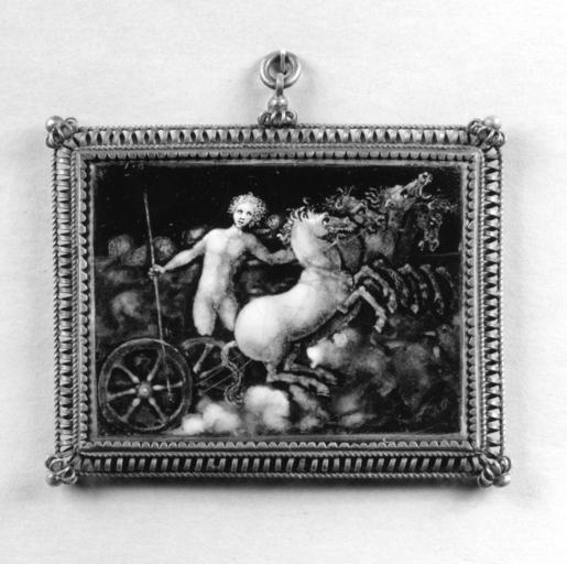 | Keywords: Master of the Mars and Venus Plaque - Apollo - Walters 44140.jpg The nude Apollo driving his four-horse chariot to the right amidst the clouds holds in the reins in his left hand and a long staff in his right ca 1540 1550 technique painted enamel copper cm 4 2 5 7 accession number 44 140 39193 Sale Galleria Sangiorgi Rome April 21 1902 Henry Walters Baltimore 1902 by purchase Walters Art Museum Henry Walters Acquired by Henry Walters 1902 place of origin Limoges France Walters Art Museum license Limoges painted enamels in the Walters Art Museum Media contributed by the Walters Art Museum needs category review Painted enamel art in the Walters Art Museum Master of the Mars and Venus Plaque Apollo Quadriga |