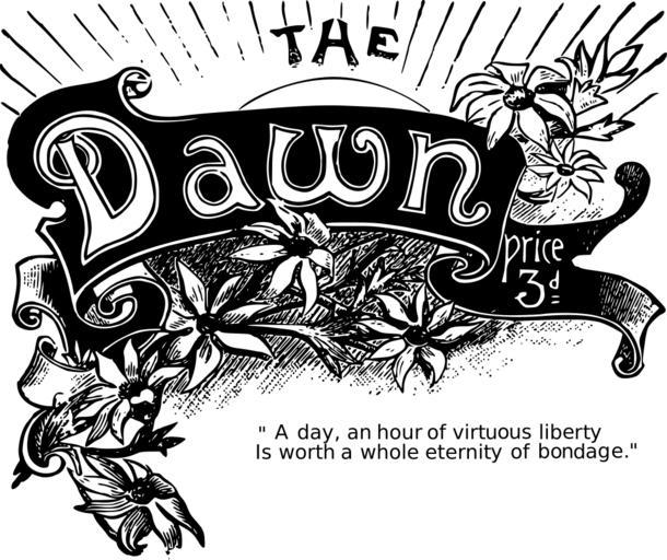 | Keywords: Masthead artwork "The Dawn".svg en This masthead was used on The Dawn from late 1900 until the final issue in 1905 A Ribbon effect is used as a Banner for the name of the Journal Flannel flowers decorate the image as well as a depiction of the Sun rising behind the banner This image - traced from a screenshot of the journal cover found at http //nla gov au/nla news-title252 and converted to SVG 2012-03-07 The Dawn a journal for Australian women Louisa Lawson 1848-1920 newspaper proprietor Custom license marker 2012 03 06 PD-Australia Uploaded with UploadWizard Logos |