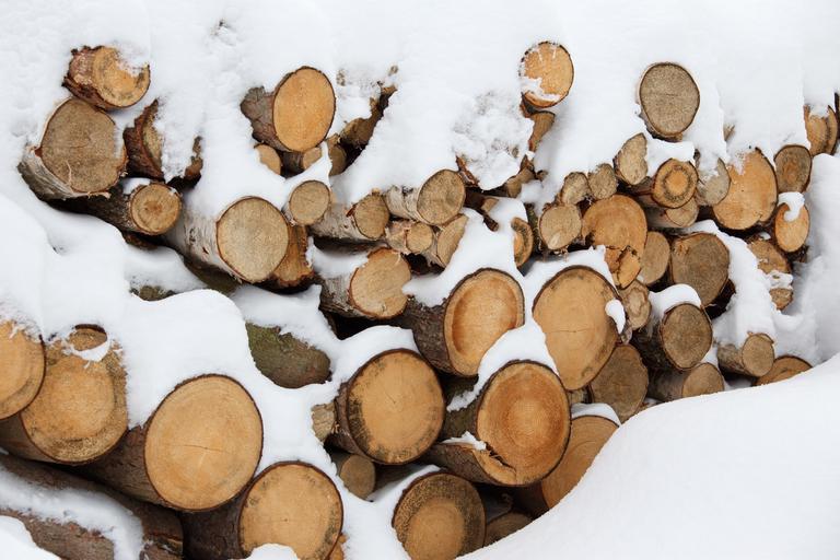 Keywords: material cut log winter energy firewood tree heating snow raw wood pile heap trunk cold stack timber