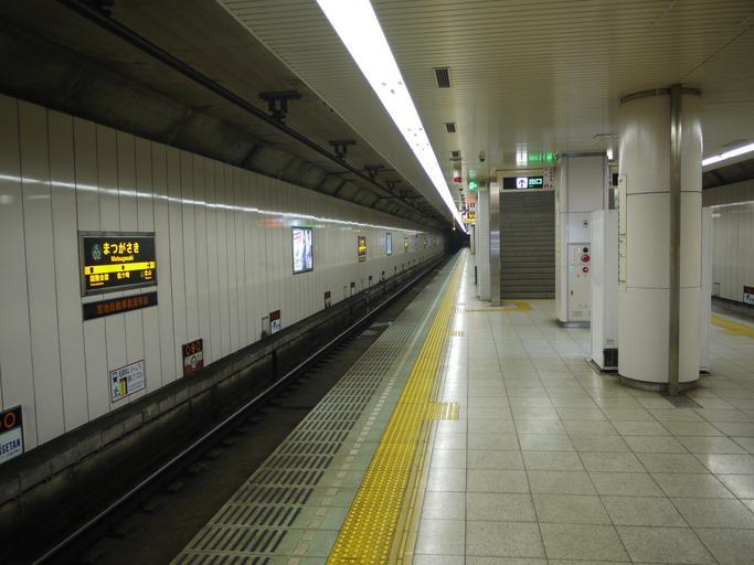 | Keywords: Matsugasaki Station truck No1.JPG ja 京都市営 下鉄烏丸線 ヶ崎駅 1番線 ホーム 端からみる en Kyoto Subway Karazuma line Matsugasaki station track No 1 viewing from the east end of the platform 2014-07-27 09 37 07 own Hahifuheho cc-zero Matsugasaki Station Kyoto Uploaded with UploadWizard |