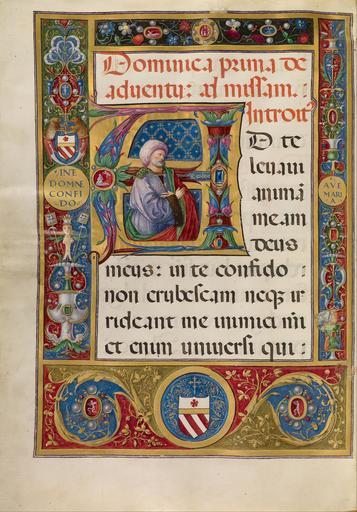 Keywords: Matteo da Milano (Italian, active 1492 - 1523) - Initial A- King David - Google Art Project.jpg commons date commons medium commons dimensions commons institution Institution Getty Center commons location commons references commons object_history commons exhibition_history commons credit_line commons inscriptions commons notes commons accession_number commons source http //www getty edu/art/gettyguide/artObjectDetails artobj 256309 commons permission commons other_versions commons zoom core title Initial A King David core date dateCreated 1520 core location locationCreated Rome Italy core format w23 4 x h33 6 cm core type Folio core relation http //www getty edu/art/gettyguide/artObjectDetails artobj 256309 core rights http //www getty edu/legal/copyright html core format medium Tempera and gold on parchment art artist_date 1492/1523 art artist_nationality Italian c-01c9b990 customtext terms_of_use http //www getty edu/legal/copyright html c-01c9b990 customtext subject David king of Israel David c-01c9b990 creator illuminator Matteo da Milano Italian active 1492 - 1523 google display_date 1520 google is_artproject TRUE google is_gigapixel FALSE google is_secured TRUE google partner/id 0000000001c9b990 google picasa_token eIMapJj7_Xnkiovv8Uq4KxZXyKA special url_id jAHX_0C6c20Ulg google partner/name The J Paul Getty Museum special partner/name_no_lang The J Paul Getty Museum PD-old-100-1923 1523 Google Art Project works by Matteo da Milano MS 87 Getty museum - Missal by Matteo da Milano David in miniature A as an initial Introit Ad te levavi