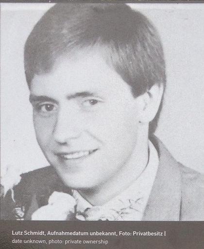 | Keywords: Maueropfer-Gedenkstele Wehage Schmidt 5.jpeg de Detail der Maueropfer-Gedenkstele Wehage Schmidt in Berlin-Altglienicke mit dem Foto des Maueropfers Lutz Schmidt 2013-06-13 11 02 38 own SCIdude cc-zero Uploaded with UploadWizard Lutz Schmidt |