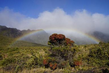 Keywords: maui hawaii sky clouds landscape rainbow mountains trees grass plants nature outside country countryside tropics tropical