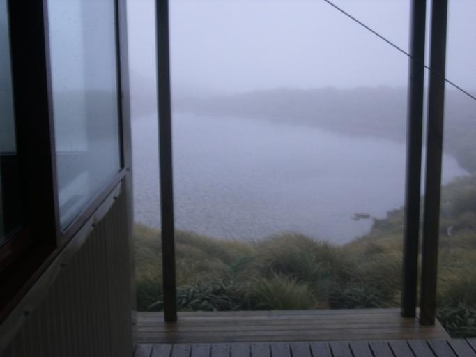 Keywords: Maungahuka tarn.jpg The tarn of the Maungahuka hut at drizzling weather 2013-04-12 own Sarang Maungahuka Hut