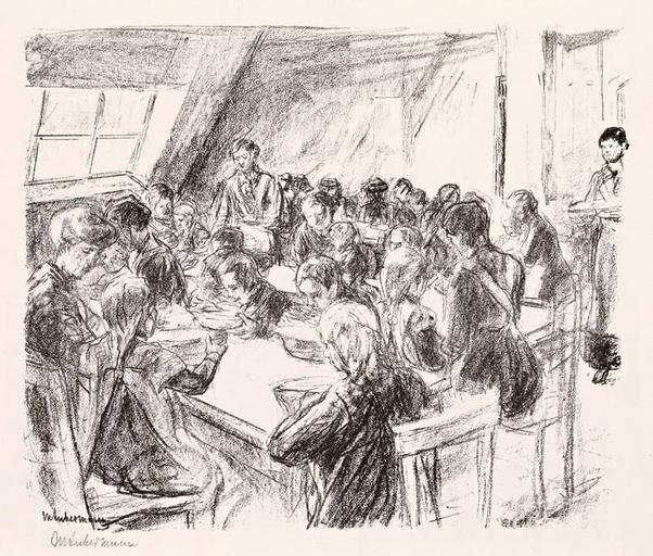 Keywords: Max Liebermann Kindervolksküche 1915.jpg Kindervolksküche Lithographie auf Zanders-Bütten 24 x 28 8 cm Signiert http //www villa-grisebach de Villa Grisebach Auktionen 1915 Creator Max Liebermann PD-old-auto 1935 Images from Villa Grisebach Auktionen Lithographs by Max Liebermann Meals in art 1915 lithographs World War I in art |
