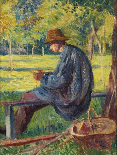 | Keywords: Maximilien Luce - Ludovic Rodo Pissarro dans le Jardin de son père à Eragny (1895).jpg Artwork Creator Maximilien Luce Ludovic Rodo Pissarro dans le Jardin de son père à Eragny 1895 oil canvas cm 33 02 26 99 accession number object history credit line exhibition history Luce 95 ~ lower left signature and date http //www sothebys com/en/auctions/ecatalogue/2013/impressionist-modern-art-n09022/lot 38 html Sotheby's New York 09 October 2013 lot 38 PD-old-auto-1923 1941 Maximilien Luce Portrait paintings of men 1890s portrait paintings Images from Sotheby's Paintings of men sitting outdoors Ludovic Rodolphe Pissarro |